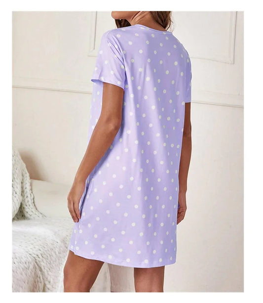 Nightshirt Round Neck Short Sleeve - Let Me Sleep - Purple