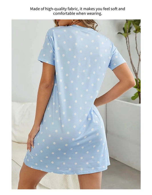 Nightshirt Round Neck Short Sleeve - Let Me Sleep - Blue