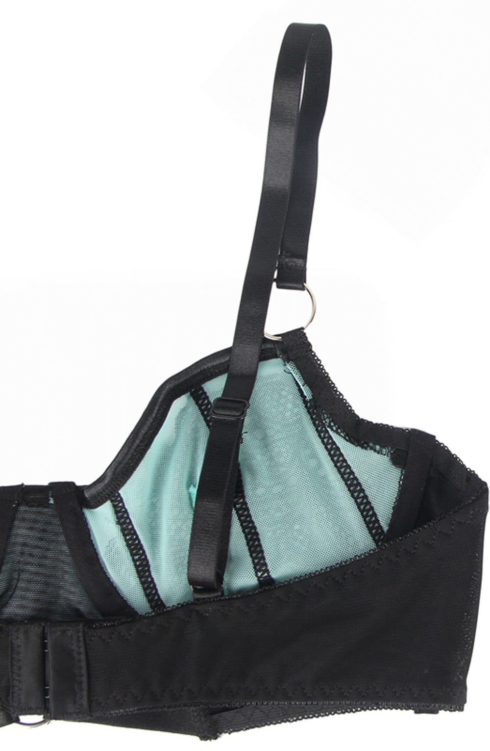 Beautiful two piece bra set. The bra is underwired, adjustable and decorated with black lace across the cups. The matching brief is also included. Item arrives packaged in a Yesx Satin bag.