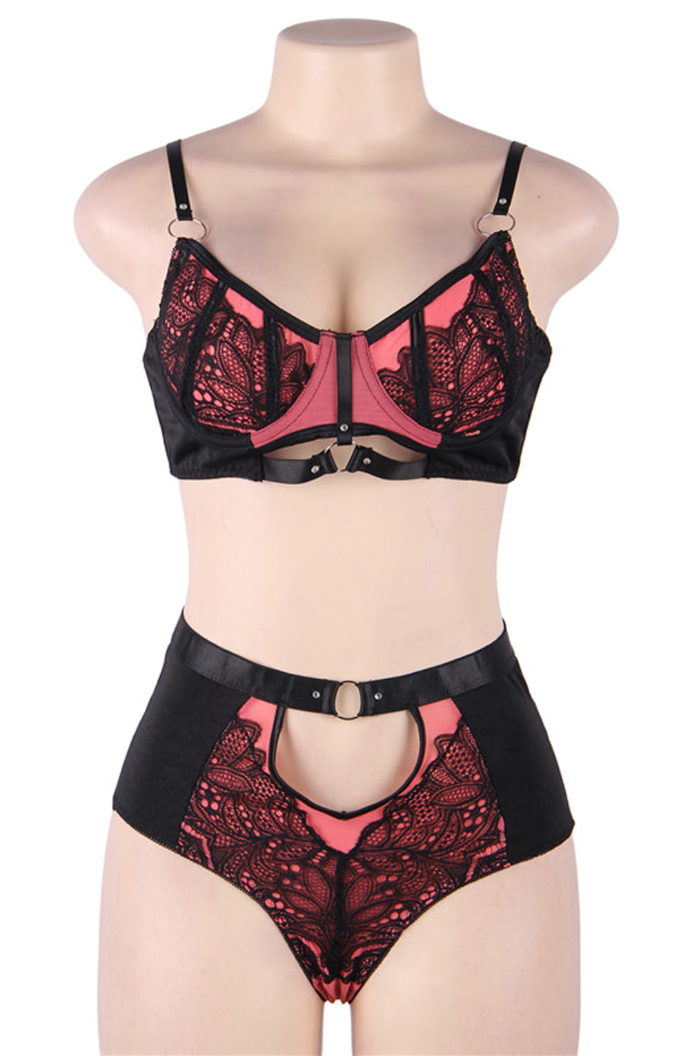 Beautiful two piece bra set. The bra is underwired, adjustable and decorated with black lace across the cups. The matching brief is also included. Item arrives packaged in a Yesx Satin bag.