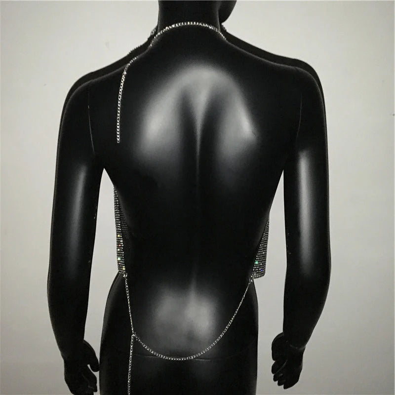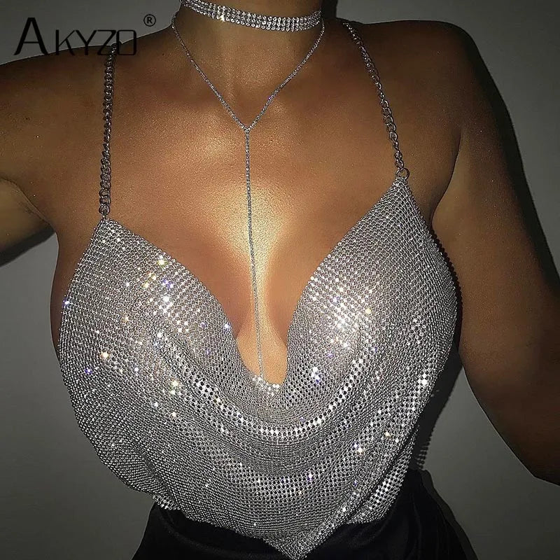 ADD - Halter Handmade Shiny Rhinestone Backless Crop Top - various colours