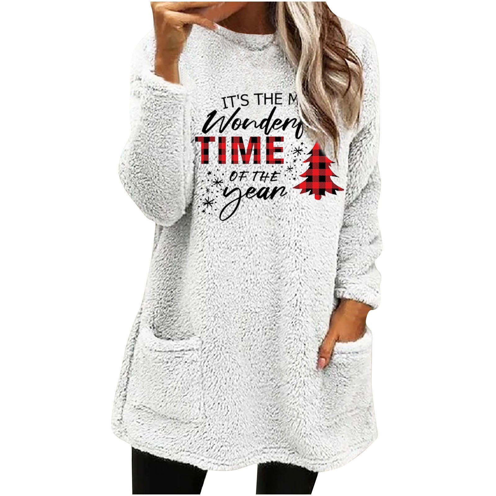 Christmas Fleece Jumper with Pockets - Wonderful Time - Various Colours