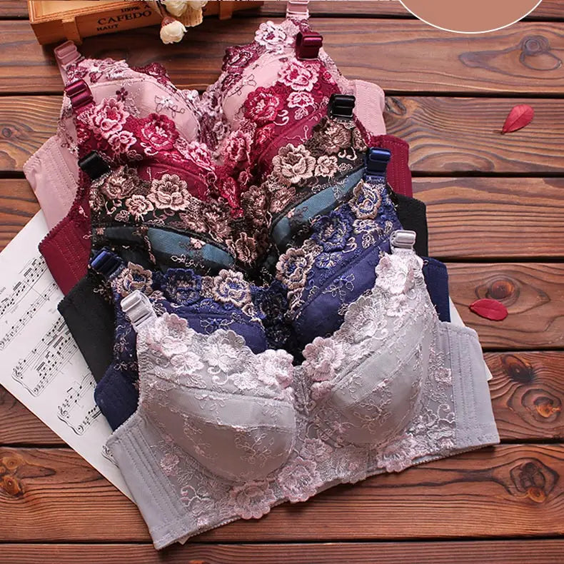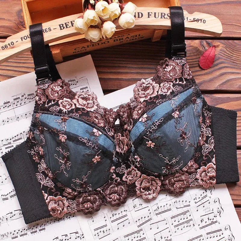 A53 - Ladies Underwire Floral Embroidered Blue Bra 34-48 B-H cup