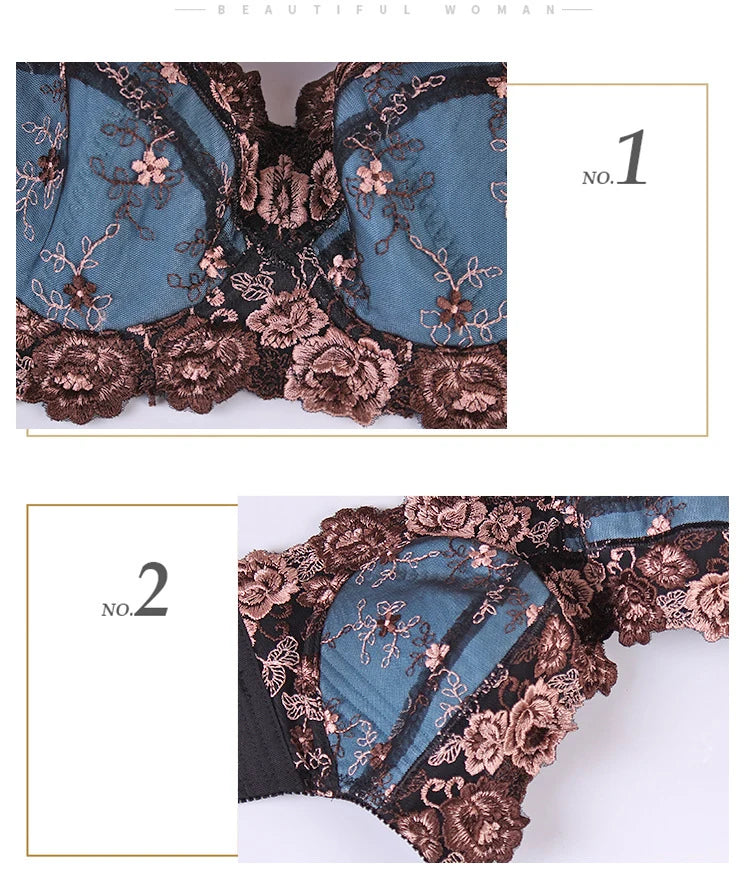 A39 - Ladies Underwire Sheer Floral Lace Blue Bra 34-48 B-H cup