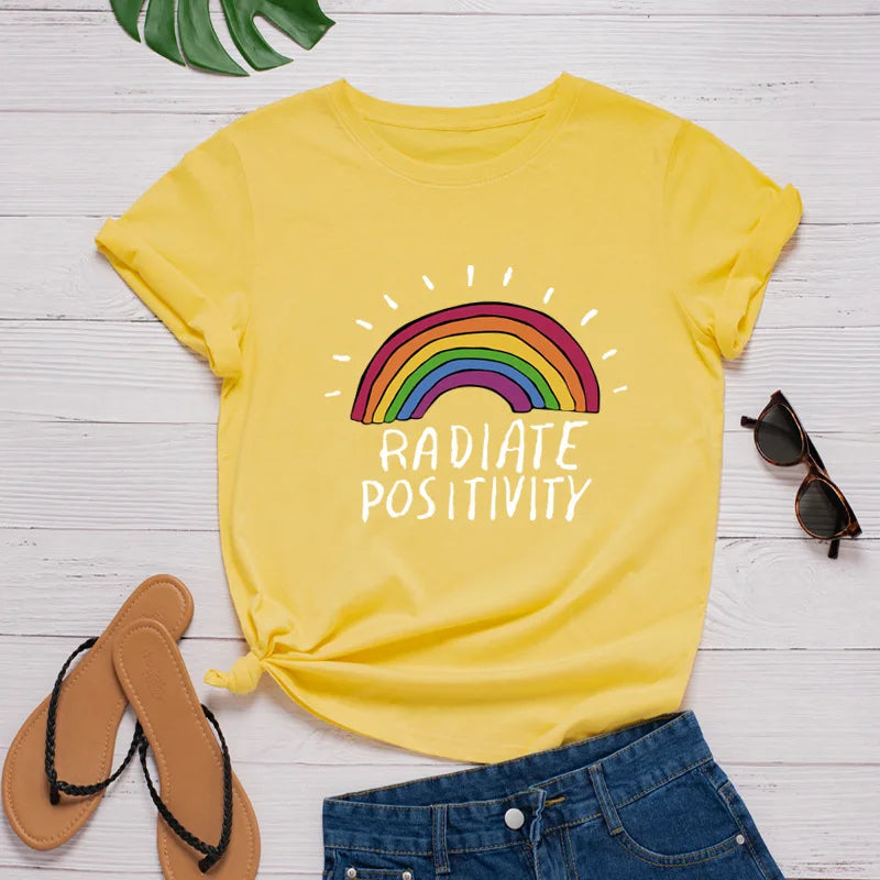 Ladies Slogan T-Shirt - Radiate Positivity - various colours - size S - 3XL