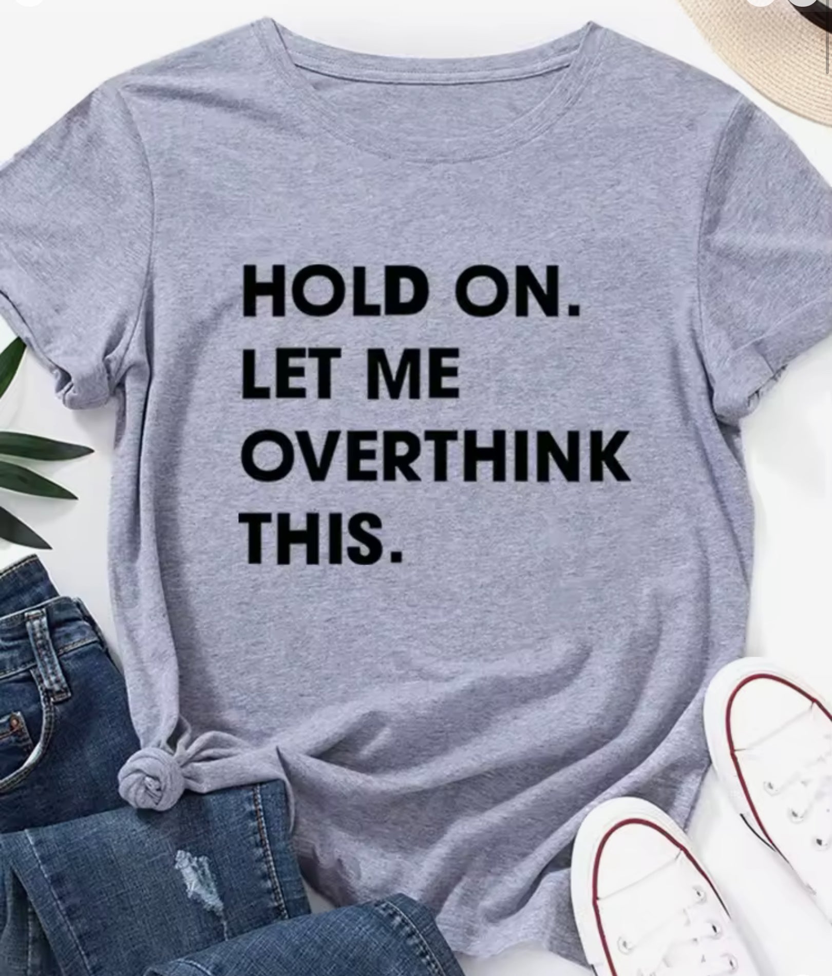 Ladies Slogan T-Shirt - Hold On, Overthink - various colours - size S - 3XL