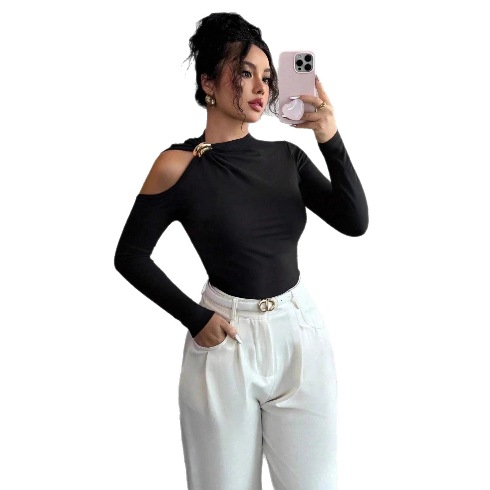 Women's Asymmetrical Shoulder Detail Long Sleeve Top